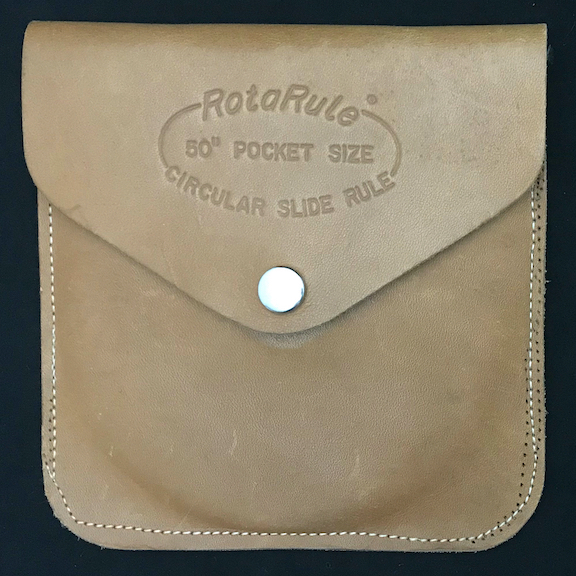 While wandering in an antique store in West Dundee, Illinois, a distinct-looking object sitting in a glass display cabinet caught my eye. Leaning against the inside wall of the cabinet, it certainly looked as though it could be a circular slide rule, though I had never seen this particular style leather case before.