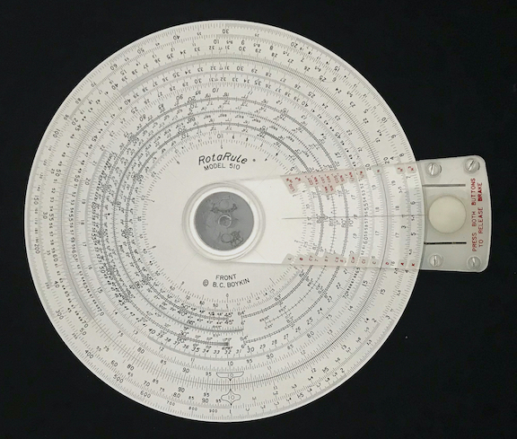 Within an hour I made it back home, where I went straight to the internet to look up “Boykin” (and, almost certainly, the store owner did so simultaneously!). On Rod Lovett’s eBay page24 a search for “Boykin Rota Rule” produced a very limited number of hits, with the most recent eBay sale being at auction for $400 in 2014. Wow! Further research that night showed me that this special rule, produced in the 1960’s, was a highly sought-after item. From the Oughtred Society web site I ascertained that Boykin produced two models – the 510 and the 560 (the one here is the 510) – and that a total of only 200 Rota-Rules were ever manufactured.25 Of the 200 slide rules produced, only the locations of a very small handful were known to slide rule collectors. This, hopefully, was about to become one more.