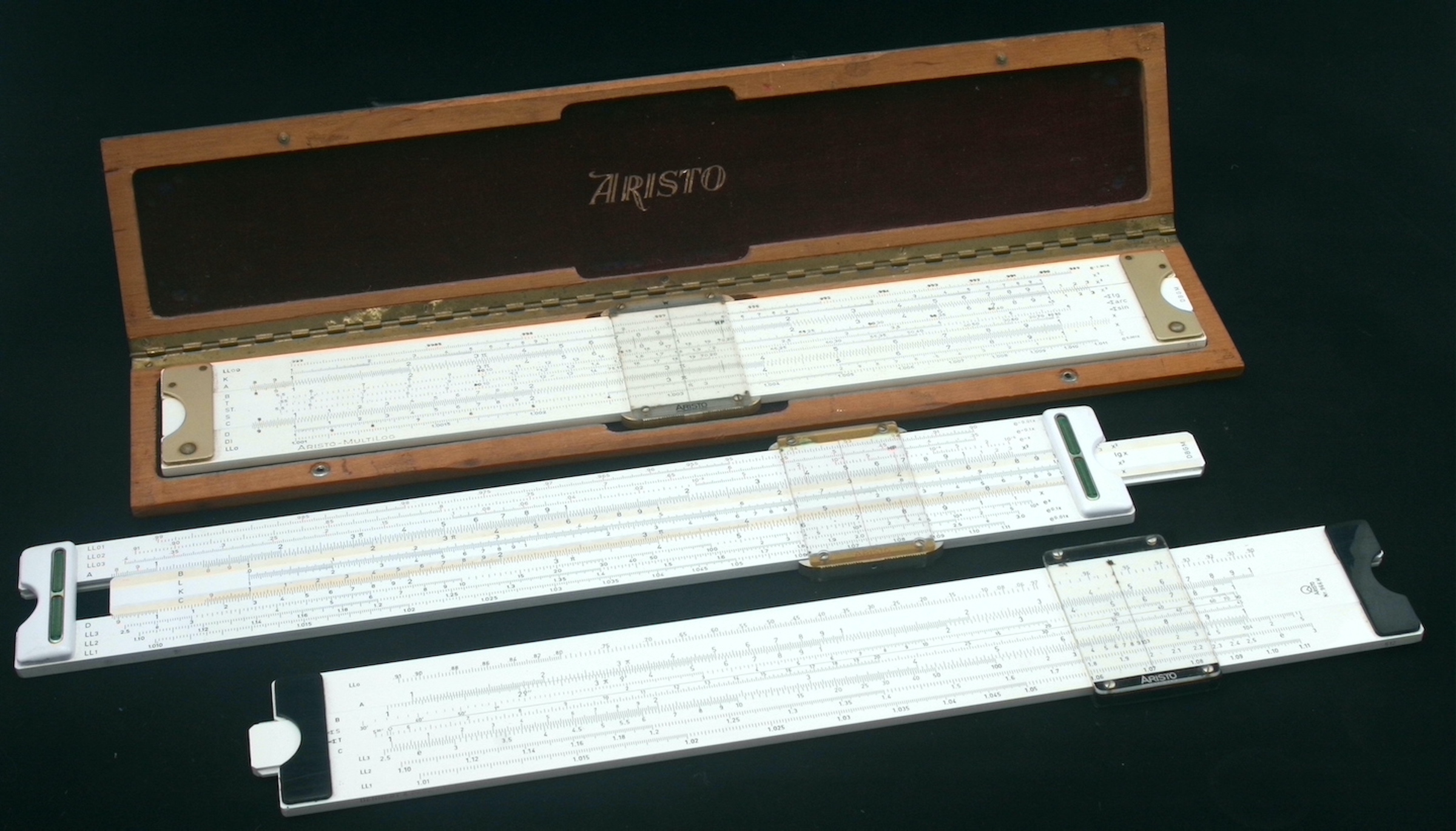 Total number of Aristo slide rules in the collection: 12. \(~~~~~~~~~~~~~~~~~~~~~~~~~~~~~~~~~\)