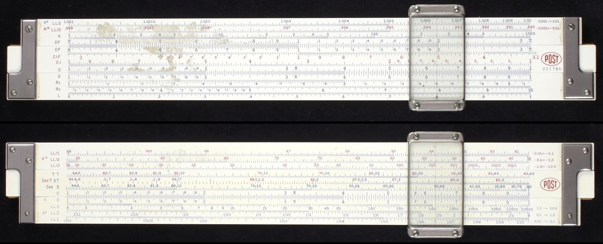 General Description: Advanced linear log-log duplex slide rule