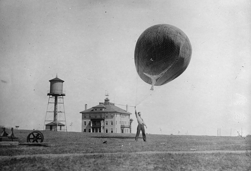 Since the systematic development of aviation in the early 20th century, balloons have been used by the world’s military and meteorological communities to ascertain the wind speed and direction at various altitudes in the earth’s atmosphere. Since the early 1900s the typical technique was to send up what was called a “pilot balloon” which had a “tail” of known length attached to it. As the balloon rose and drifted across the sky, tachyometric telescopes or theodolites (similar to those used in stadia measurements) would measure the angle from the ground to the balloon, and measure the visual angular extent of the tail hanging below the balloon.