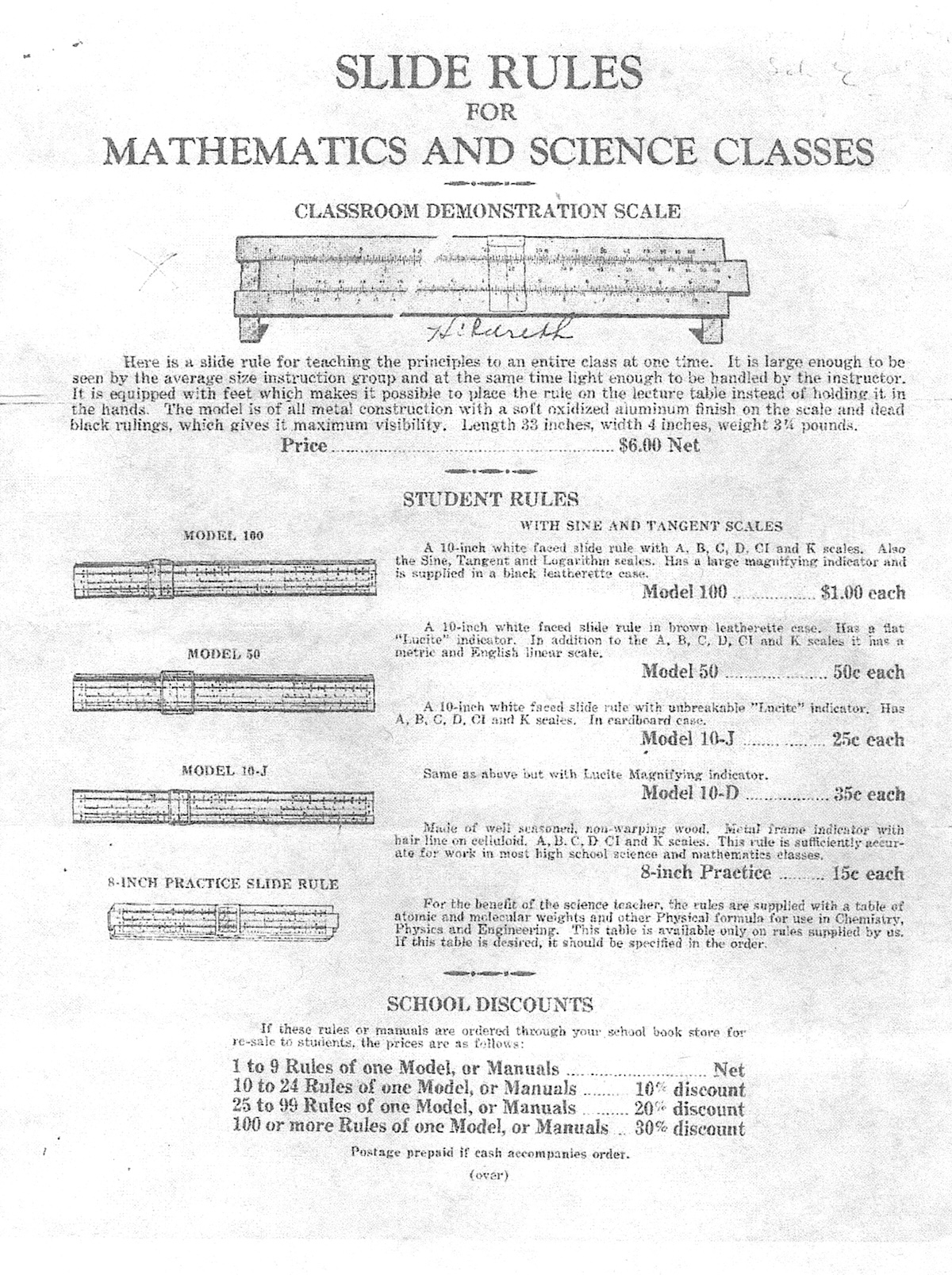 1939 | opens sales office in New York, NY, as Acu-Rule | Laboratory Specialties, Inc., formed in Wabash, IN, publishes “Introducing the Slide Rule” | ||