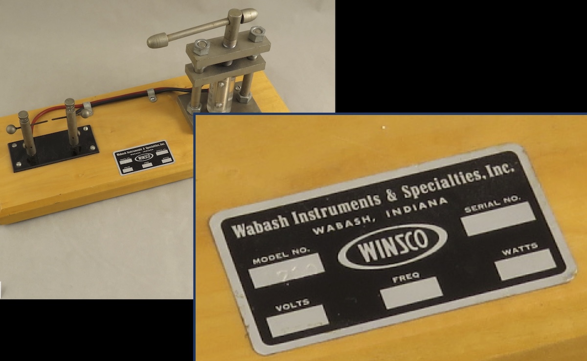 Additionally, I found an example on the Smithsonian web site of a Winsco-branded item – a piezoelectric demonstration device – which was manufactured by a company named Wabash Instruments and Specialties, Inc., of Wabash, Indiana.132