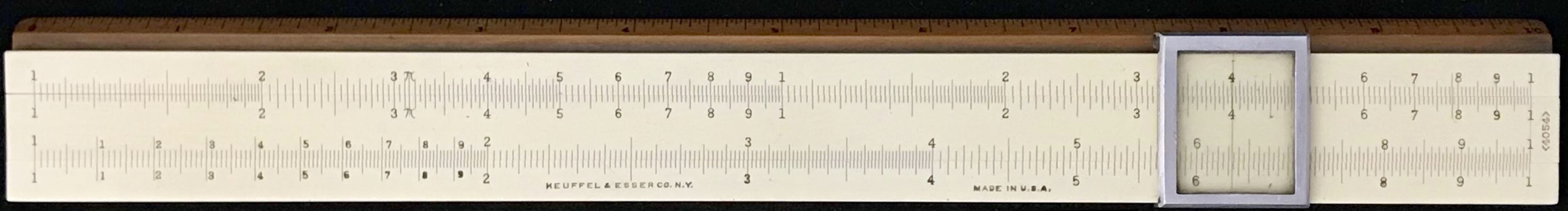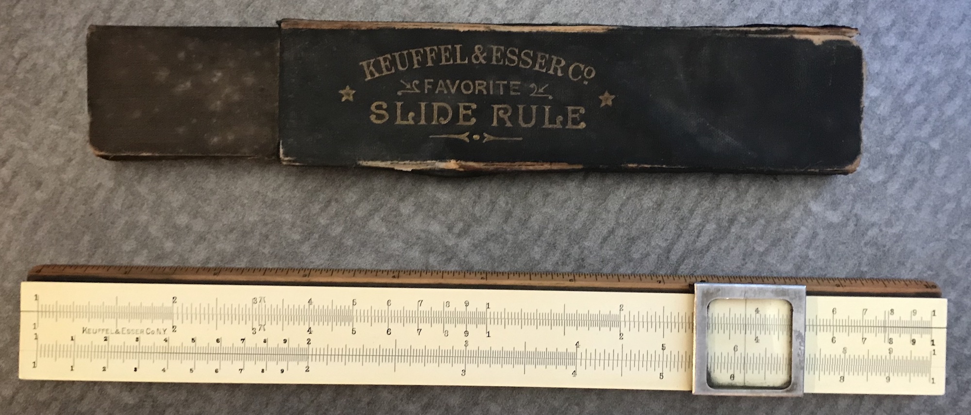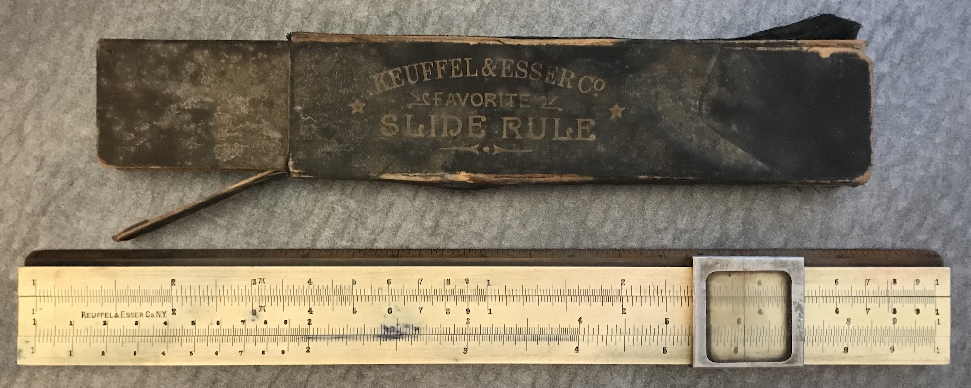All of the above suggests that the slide rule we have here was one of the very earliest slide rules manufactured in the U.S. by K&E, somewhat transitional between the American rule of McCoy and the introductory 1899 “Favorite” model.