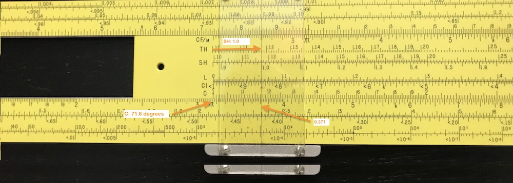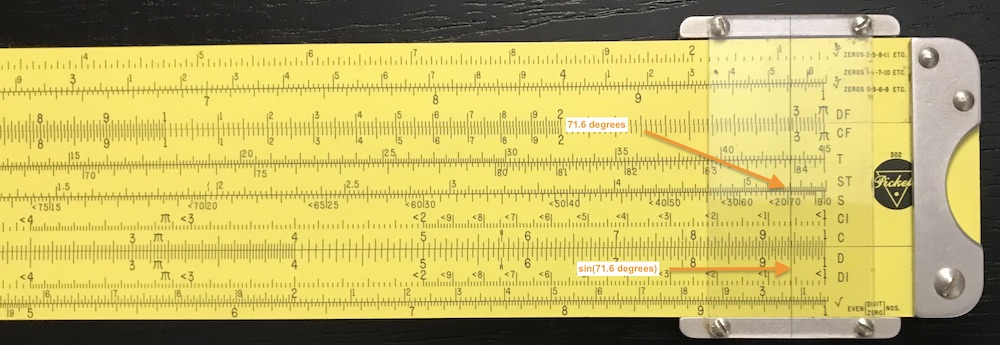 - Reset the slide; align cursor to sin(71.6) = 0.95;